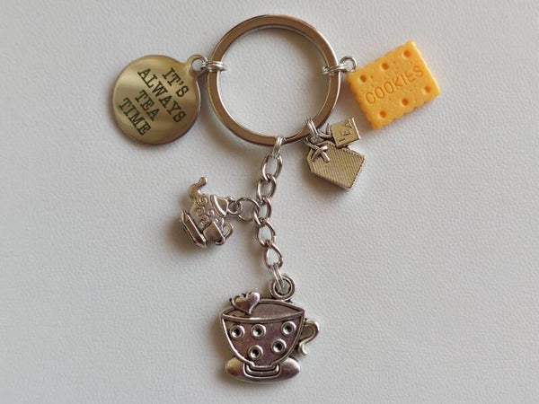 Sleutelhanger Thee "It's always tea time" met geel cookie